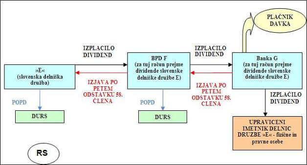 V obravnavanem primeru sicer BPD F s prejemom dohodka ne bo postala plačnik davka, ker bo dividende izplačala naprej banki G, vendar ne glede na to, je dolžna dati izjavo po petem odstavku 58. člena ZDavP-2 in DURS predložiti obrazec POPD.